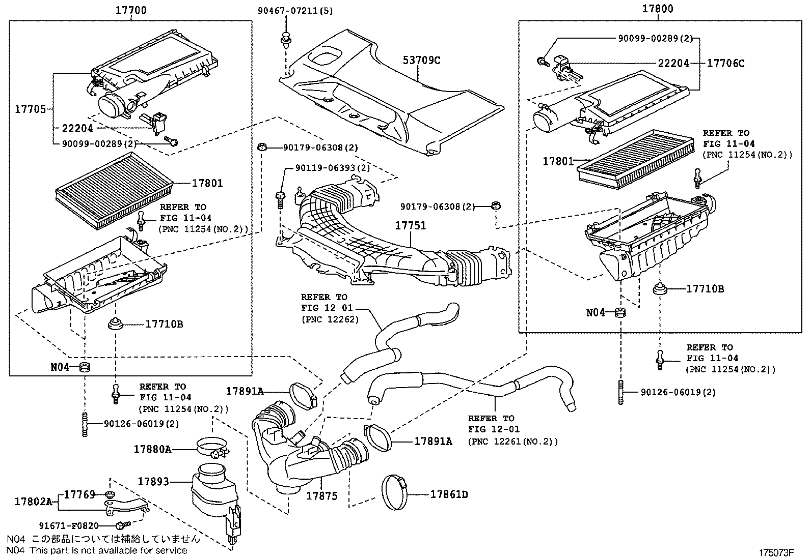 LS460 460L |  AIR CLEANER ** Refer Fig ** Refer Fig ** Refer Fig ** Refer Fig ** Refer Fig ** Refer Fig 17700 - CLEANER ASSY, AIR 17705 - CAP SUB-ASSY, AIR CLEANER 17706C - CAP SUB-ASSY, AIR CLEANER, LH 17710B - GROMMET 17710B - GROMMET 17751 - INLET, AIR CLEANER, NO.1 17769 - SUPPORT, AIR CLEANER 17800 - CLEANER ASSY, AIR W/ELEMENT, LH 17801 - ELEMENT SUB-ASSY, AIR CLEANER FILTER 17801 - ELEMENT SUB-ASSY, AIR CLEANER FILTER 17802A - BRACKET SUB-ASSY, RESONATOR 17861D - CLAMP(FOR INTAKE AIR CONNECTOR) 17875 - PIPE, INTAKE AIR CONNECTOR 17880A - CLAMP, HOSE 17891A - CLAMP, AIR CLEANER HOSE 17891A - CLAMP, AIR CLEANER HOSE 17893 - RESONATOR, INTAKE AIR 22204 - METER SUB-ASSY, INTAKE AIR FLOW 22204 - METER SUB-ASSY, INTAKE AIR FLOW 53709C - COVER SUB-ASSY, AIR CLEANER INLET  ** Std Part  ** Std Part  ** Std Part  ** Std Part  ** Std Part  ** Std Part  ** Std Part  ** Std Part  ** Std Part