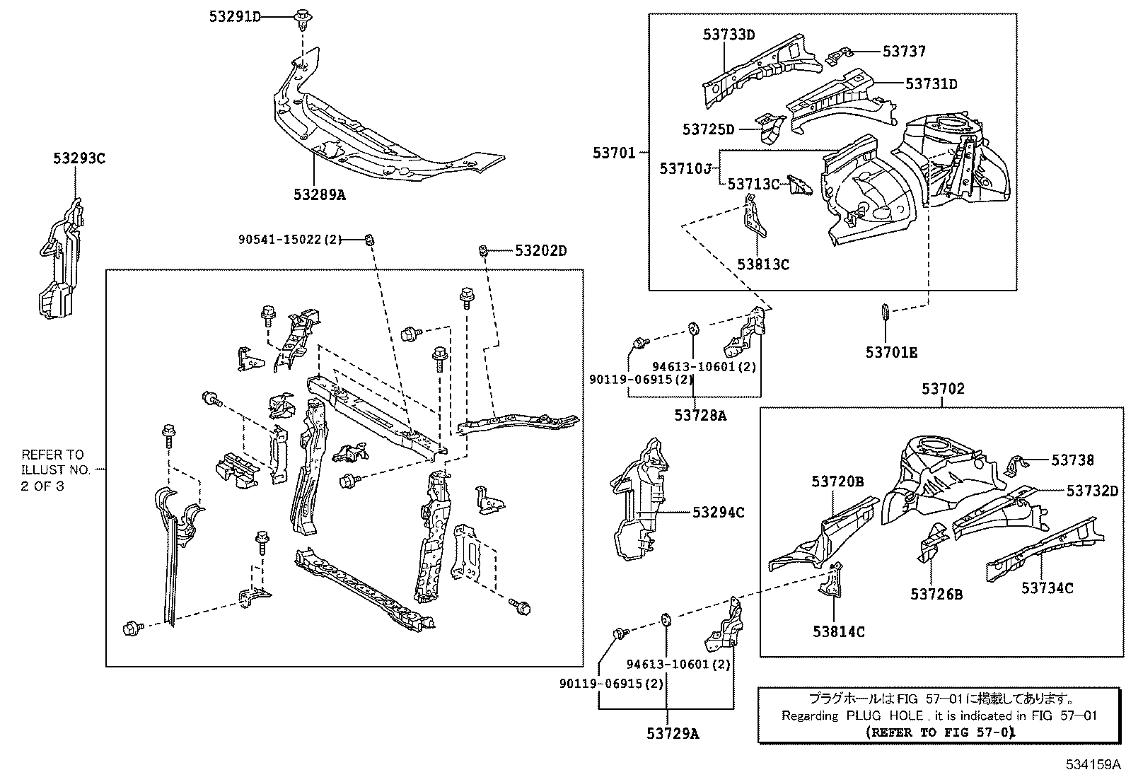 CT200H |  FRONT FENDER APRON DASH PANEL 53202D - CUSHION, RADIATOR SUPPORT 53289A - COVER, RADIATOR SUPPORT OPENING 53291D - CLIP, RADIATOR SUPPORT TO FRAME 53293C - DEFLECTOR, RADIATOR SIDE, RH 53294C - DEFLECTOR, RADIATOR SIDE, LH 53701 - APRON SUB-ASSY, FRONT FENDER, RH 53701E - GROMMET(FOR FRONT FENDER APRON) 53702 - APRON SUB-ASSY, FRONT FENDER, LH 53710J - APRON ASSY, FRONT FENDER, RH 53713C - EXTENSION, FRONT FENDER APRON, FRONT RH 53720B - APRON ASSY, FRONT FENDER, LH 53725D - REINFORCEMENT, FRONT SPRING SUPPORT, NO.2 RH 53726B - REINFORCEMENT, FRONT SPRING SUPPORT, NO.2 LH 53728A - BRACKET, FENDER APRON, RH 53729A - BRACKET, FENDER APRON, LH 53731D - MEMBER, FRONT APRON TO COWL SIDE, UPPER RH 53732D - MEMBER, FRONT APRON TO COWL SIDE, UPPER LH 53733D - MEMBER, FRONT APRON TO COWL SIDE, LOWER FRONT RH 53734C - MEMBER, FRONT APRON TO COWL SIDE, LOWER FRONT LH 53737 - PLATE, FRONT APRON TO COWL SIDE MEMBER, RH 53738 - PLATE, FRONT APRON TO COWL SIDE MEMBER, LH 53813C - EXTENSION, FRONT FENDER, RH 53814C - EXTENSION, FRONT FENDER, LH ** Refer Fig  ** Std Part  ** Std Part  ** Std Part  ** Std Part  ** Std Part