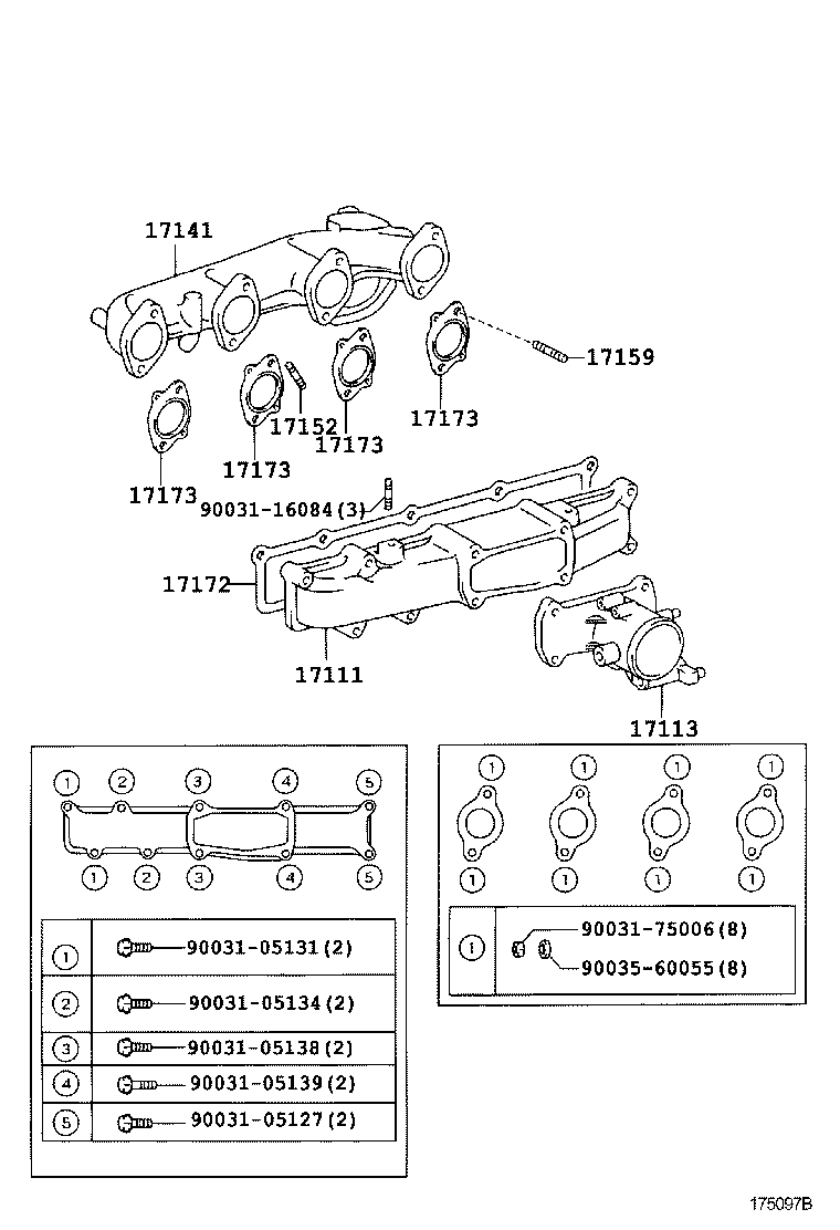 DYNA |  MANIFOLD 17111 - MANIFOLD, INTAKE 17113 - PIPE, INTAKE 17141 - MANIFOLD, EXHAUST 17152 - BOLT, STUD(FOR MANIFOLD TO EXHAUST PIPE) 17159 - BOLT, STUD(FOR MANIFOLD TO CYLINDER HEAD) 17172 - GASKET, MANIFOLD TO CYLINDER HEAD 17173 - GASKET, EXHAUST MANIFOLD TO HEAD 17173 - GASKET, EXHAUST MANIFOLD TO HEAD 17173 - GASKET, EXHAUST MANIFOLD TO HEAD 17173 - GASKET, EXHAUST MANIFOLD TO HEAD  ** Std Part  ** Std Part  ** Std Part  ** Std Part  ** Std Part  ** Std Part  ** Std Part  ** Std Part