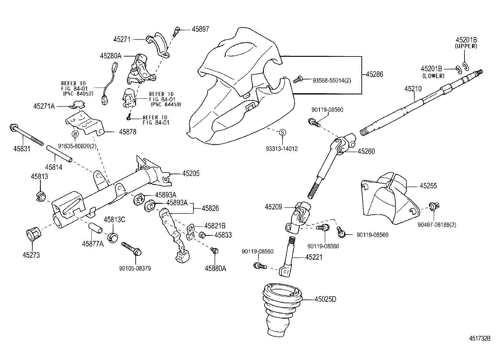 VITZ |  STEERING COLUMN SHAFT 45025D - COVER SUB-ASSY, STEERING COLUMN HOLE, NO.1 45201B - RING, SHAFT SNAP(FOR STEERING MAIN SHAFT) 45201B - RING, SHAFT SNAP(FOR STEERING MAIN SHAFT) 45205 - TUBE SUB-ASSY, STEERING COLUMN 45209 - YOKE SUB-ASSY, STEERING SLIDING 45210 - SHAFT ASSY, STEERING MAIN 45221 - SHAFT, STEERING INTERMEDIATE 45255 - PLATE, STEERING COLUMN HOLE COVER 45260 - SHAFT ASSY, STEERING INTERMEDIATE, NO.2 45271 - CLAMP, STEERING COLUMN, UPPER 45271A - CLAMP, STEERING COLUMN, UPPER NO.2 45273 - BUSH, STEERING MAIN SHAFT 45280A - BRACKET ASSY, STEERING COLUMN, UPPER 45286 - COVER, STEERING COLUMN 45813 - COLLAR, TILT STEERING SUPPORT, NO.1 45813C - COLLAR, TILT STEERING SUPPORT, NO.1 45814 - COLLAR, TILT STEERING SUPPORT, NO.2 45821B - REINFORCE, TILT STEERING SUPPORT, NO.1 45826 - LEVER, STEERING TILT 45831 - BOLT, TILT LEVER LOCK, NO.1 45833 - NUT, TILT STEERING ADJUSTING, NO.1 45877A - SPACER, STEERING COLUMN BRACKET 45878 - BRACKET, STEERING COLUMN UPPER SUPPORT 45880A - BOLT(FOR STEERING TILT LEVER) 45893A - STOPPER, TILT STEERING PAWL 45893A - STOPPER, TILT STEERING PAWL 45897 - BOLT, STEERING LOCK SET ** Refer Fig ** Refer Fig ** Refer Fig  ** Std Part  ** Std Part  ** Std Part  ** Std Part  ** Std Part  ** Std Part  ** Std Part  ** Std Part  ** Std Part