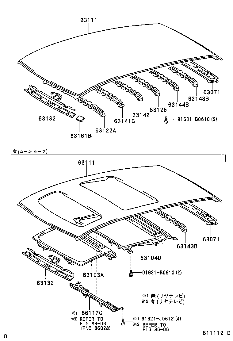 ESTIMA T L |  ROOF PANEL BACK PANEL 63071 - FRAME SUB-ASSY, BACK DOOR OPENING, UPPER 63071 - FRAME SUB-ASSY, BACK DOOR OPENING, UPPER 63103A - REINFORCEMENT SUB-ASSY, ROOF PANEL 63104D - REINFORCEMENT SUB-ASSY, ROOF PANEL, NO.2 63111 - PANEL, ROOF 63111 - PANEL, ROOF 63122A - REINFORCEMENT, ROOF PANEL, FRONT 63125 - REINFORCEMENT, ROOF PANEL, NO.2 63132 - PANEL, WINDSHIELD HEADER, INNER 63132 - PANEL, WINDSHIELD HEADER, INNER 63141G - REINFORCEMENT, ROOF PANEL, NO.1 63142 - REINFORCEMENT, ROOF PANEL, NO.2 63143B - REINFORCEMENT, ROOF PANEL, NO.3 63143B - REINFORCEMENT, ROOF PANEL, NO.3 63144B - REINFORCEMENT, ROOF PANEL, NO.4 63161B - PLATE, ROOF HEADER PANEL, NO.1 ** Refer Fig ** Refer Fig 86117G - BRACKET, MULTI-DISPLAY CONTROLLER, A  ** Std Part  ** Std Part  ** Std Part