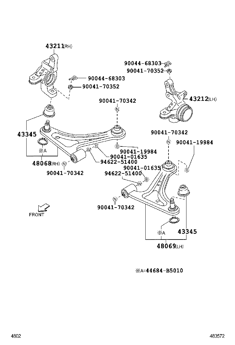 PIXIS VAN |  FRONT AXLE ARM STEERING KNUCKLE 43211 - KNUCKLE, STEERING, RH 43212 - KNUCKLE, STEERING, LH 43345 - COVER, LOWER BALL JOINT DUST 43345 - COVER, LOWER BALL JOINT DUST  ** Std Part 48068 - ARM SUB-ASSY, FRONT SUSPENSION, LOWER NO.1 RH 48069 - ARM SUB-ASSY, FRONT SUSPENSION, LOWER NO.1 LH  ** Std Part  ** Std Part  ** Std Part  ** Std Part  ** Std Part  ** Std Part  ** Std Part  ** Std Part  ** Std Part  ** Std Part  ** Std Part  ** Std Part  ** Std Part  ** Std Part