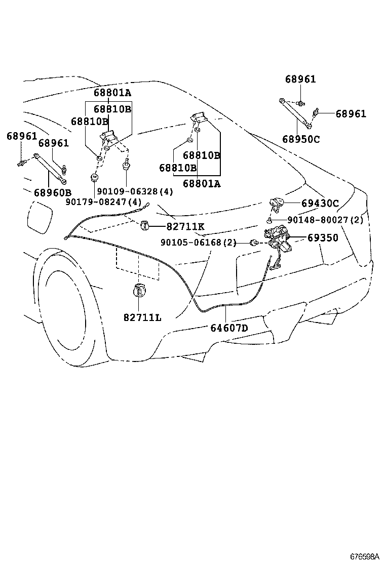 LFA |  BACK DOOR LOCK HANDLE 64607D - CABLE SUB-ASSY, BACK DOOR LOCK CONTROL 68801A - HINGE SUB-ASSY, BACK DOOR, UPPER 68801A - HINGE SUB-ASSY, BACK DOOR, UPPER 68810B - PAD, BACK DOOR HINGE 68810B - PAD, BACK DOOR HINGE 68810B - PAD, BACK DOOR HINGE 68810B - PAD, BACK DOOR HINGE 68950C - STAY ASSY, BACK DOOR, RH 68960B - STAY ASSY, BACK DOOR, LH 68961 - BOLT, BACK DOOR STAY 68961 - BOLT, BACK DOOR STAY 68961 - BOLT, BACK DOOR STAY 68961 - BOLT, BACK DOOR STAY 69350 - LOCK ASSY, BACK DOOR 69430C - STRIKER ASSY, BACK DOOR LOCK 82711K - CLAMP, WIRING HARNESS 82711L - CLAMP, WIRING HARNESS  ** Std Part  ** Std Part  ** Std Part  ** Std Part