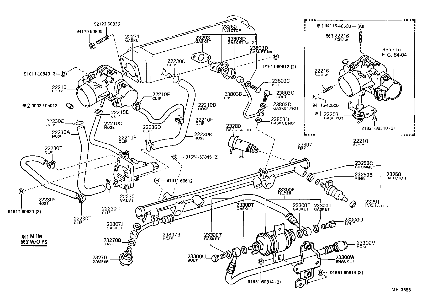 4 RUNNER TRUCK |  FUEL INJECTION SYSTEM  ** Std Part 22203 - DASH POT SUB-ASSY(FOR THROTTLE BODY) 22210 - BODY ASSY, THROTTLE 22210 - BODY ASSY, THROTTLE 22210C - HOSE, WATER BY-PASS, NO.1 22210D - HOSE, WATER BY-PASS, NO.2 22210E - CLAMP OR CLIP, HOSE(FOR WATER BY-PASS HOSE, NO.1) 22210E - CLAMP OR CLIP, HOSE(FOR WATER BY-PASS HOSE, NO.1) 22210F - CLAMP OR CLIP, HOSE (FOR WATER BY-PASS HOSE, NO.2) 22210F - CLAMP OR CLIP, HOSE (FOR WATER BY-PASS HOSE, NO.2) 22216 - SCREW, DASH POT ADJUSTING 22216 - SCREW, DASH POT ADJUSTING 22230 - VALVE ASSY, AUXILIARY AIR 22230A - HOSE, AUXILIARY AIR VALVE, NO.1 22230B - HOSE, AUXILIARY AIR VALVE, NO.2 22230C - CLIP, AUXILIARY AIR VALVE HOSE, NO.1 22230C - CLIP, AUXILIARY AIR VALVE HOSE, NO.1 22230D - CLIP, AUXILIARY AIR VALVE HOSE, NO.2 22230D - CLIP, AUXILIARY AIR VALVE HOSE, NO.2 22230S - HOSE, WATER BY-PASS(FOR AUXILIARY AIR VALVE) 22230T - CLAMP OR CLIP, HOSE(FOR WATER BY-PASS) 22230T - CLAMP OR CLIP, HOSE(FOR WATER BY-PASS) 22271 - GASKET, THROTTLE BODY 23250 - INJECTOR ASSY, FUEL 23250B - RING, O(FOR FUEL INJECTOR) 23250C - GROMMET(FOR FUEL INJECTOR) 23260 - INJECTOR ASSY, COLD START FUEL 23270 - DAMPER ASSY, FUEL PRESSURE PULSATION 23270B - GASKET(FOR PULSATION DAMPER HOSE) 23280 - REGULATOR ASSY, FUEL PRESSURE 23291 - INSULATOR, INJECTOR VIBRATION 23293 - GASKET, COLD START INJECTOR 23300P - FILTER, FUEL(FOR EFI) 23300T - GASKET(FOR FUEL FILTER) 23300T - GASKET(FOR FUEL FILTER) 23300T - GASKET(FOR FUEL FILTER) 23300T - GASKET(FOR FUEL FILTER) 23300U - BOLT, UNION(FOR FUEL FILTER) 23300U - BOLT, UNION(FOR FUEL FILTER) 23300V - HOSE, FUEL(FOR FUEL INLET) 23300W - BRACKET, FUEL FILTER 23803B - PIPE SUB-ASSY, FUEL, NO.3 23803C - GASKET(NOZZLE LEKAGE PIPE NO.3) 23803C - GASKET(NOZZLE LEKAGE PIPE NO.3) 23803D - BOLT, UNION(FOR NOZZLE LEKAGE PIPE NO.3) 23803D - BOLT, UNION(FOR NOZZLE LEKAGE PIPE NO.3) 23803D - BOLT, UNION(FOR NOZZLE LEKAGE PIPE NO.3) 23803D - BOLT, UNION(FOR NOZZLE LEKAGE PIPE NO.3) 23807 - PIPE SUB-ASSY, FUEL DELIVERY 23807B - HOSE, FUEL DELIVERY PIPE 23807J - GASKET, PIPE FUEL DELIVARY INLET ** Refer Fig  ** Std Part  ** Std Part  ** Std Part  ** Std Part  ** Std Part  ** Std Part  ** Std Part  ** Std Part  ** Std Part  ** Std Part  ** Std Part  ** Std Part